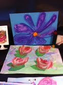 We finished with painting flowers on canvases using acrylics. Unfortunately, I failed to take photos!! But the end results were beautiful. You can buy panel canvases from Dick Blick very reasonably and I used the dollar acrylic paint from Michaels. Here is a peek at a photo a parent took: