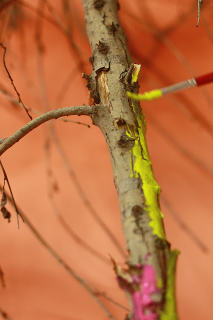 What a magical tree. I like the idea of transforming it with the paint and the tissue leaves.