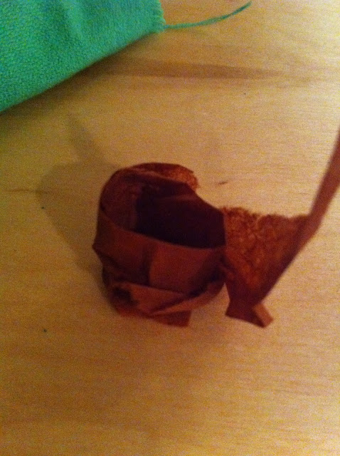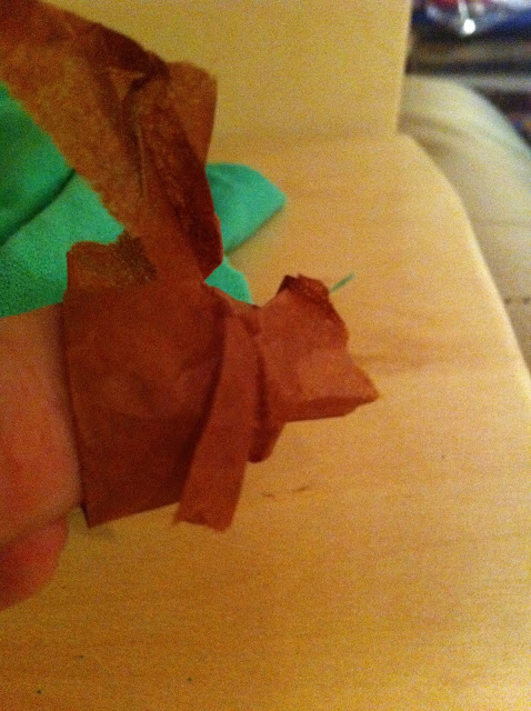 Wrap a piece of brown tissue paper around your thumb.
