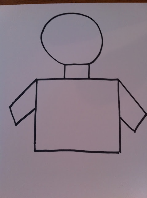 Draw a circle or square for his head.