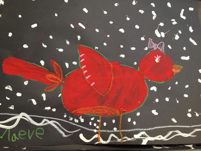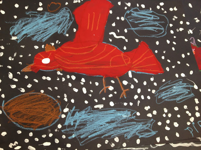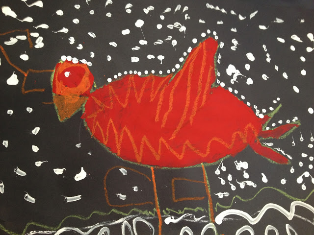 - Drew and painted the bird. Let it dry. (Used oil pastels to draw the bird.)