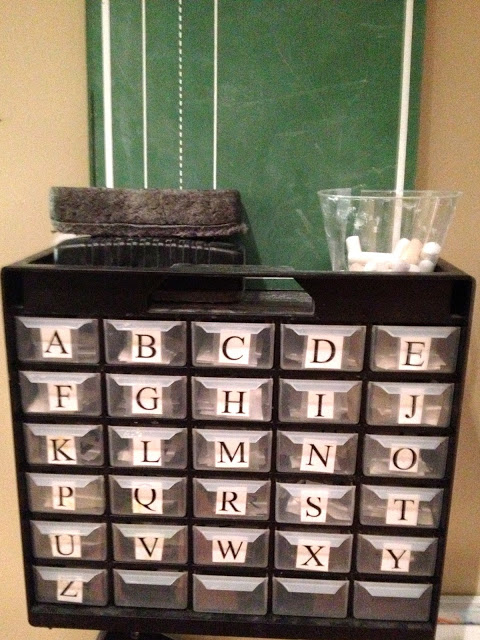 Any idea where to get a cabinet of little drawers like that for the alphabet?