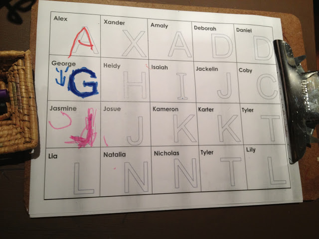 A brilliant sign-in sheet! The first letter of the child's name. Love this for preschoolers!