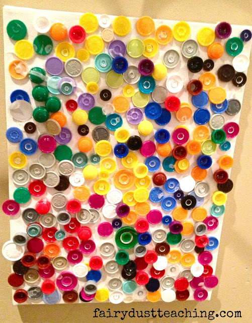 A wonderful collaborative art piece made with bottle caps. Love, love.