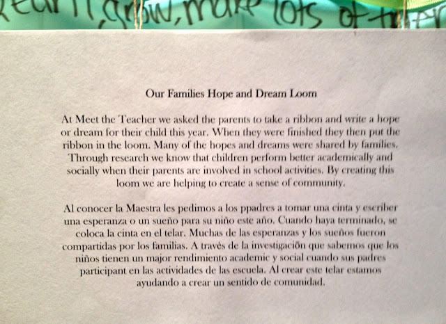 Hopes and Dreams Loom: I love. this. so. much! I have a warm spot in my heart for woven pieces. The parent wrote their hopes and dreams for their child on a ribbon and wove it into the loom. This is so wonderful.