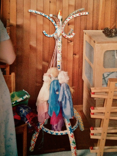 There is such a respect and honor to the presenting of a play.  It is an inner quieting as the teachers begin to lift the silk to reveal the story.  There is a special, mysterious quality to covering the stage or table so the children do not see the puppets.  It is amazing.  Many children will gasp with delight when the veil is lifted.
