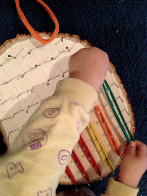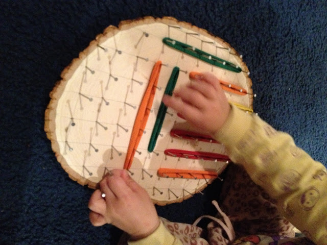 I love geoboards! Since local shops don’t offer it, I had to make one my self. I used a cork board, you can see it here: http://stepfordska-supruga-en.blogspot.com/2012/11/geoboard-diy.html