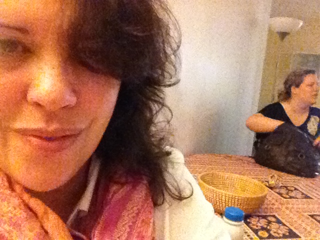 Cat and Lizzie sat out on the balcony for a little nibble of food.