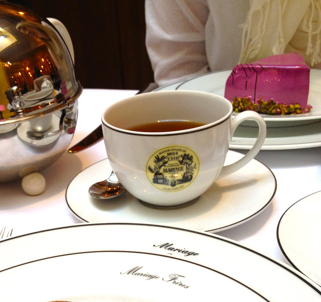 Ooh la la – tea salons in Paris! Today I went to Mariage Freres, which has been there since 1850. They had over 600 varieties of teas from which to pick. It was overwhelming so I just went with the first tea that caught my eye. It was the “rouge d'automne the noir. It is a black tea with candied chestnut infusions. Divine! (Chestnut is popular here and for good reason.)