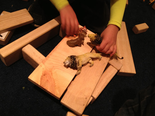 Block play is so rich. It can expand to include so many different kinds of constructions. In my block center I have the following materials (in addition to the blocks):