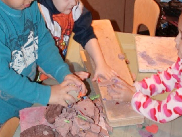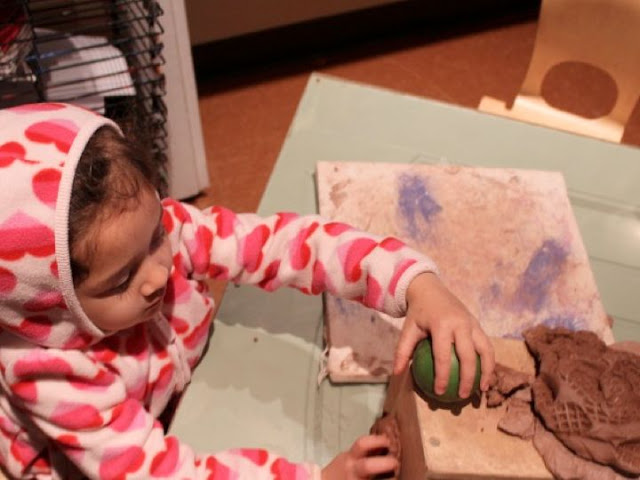 Friends brought their decorated clay to morning meeting with pride.