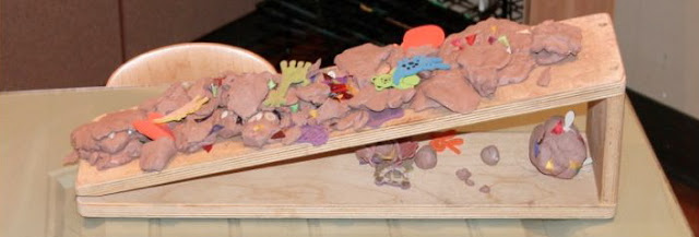 Three theories were put before the group: A.) Clay must be added to the back of the ramp. B.) The clay at the top of the ramp must be made taller. C.) All the clay must be removed. A small group of friends then went back to the atelier to test the different theories.