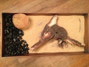Arrange large wood and stone pieces.