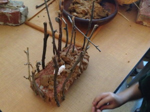 This is a super fun playdough center – perfect during the fairy tale, The Three Little Pigs. I make a big batch of brown playdough and put out the three materials the three pigs used to build their houses. I let the children know that they can build a house for their “pig” any way they wish. Sometimes they want to add rocks and shells. It is so much fun!
