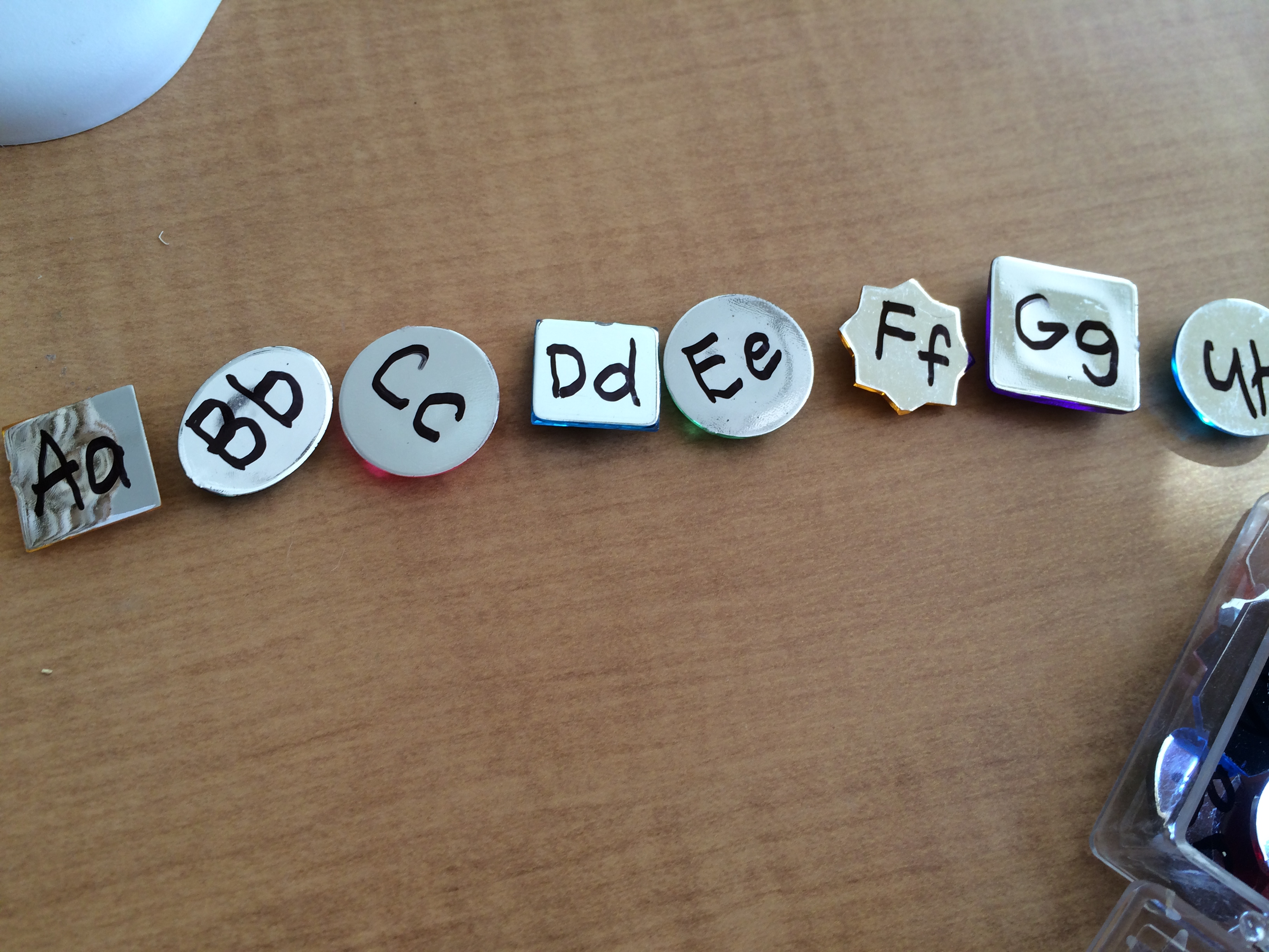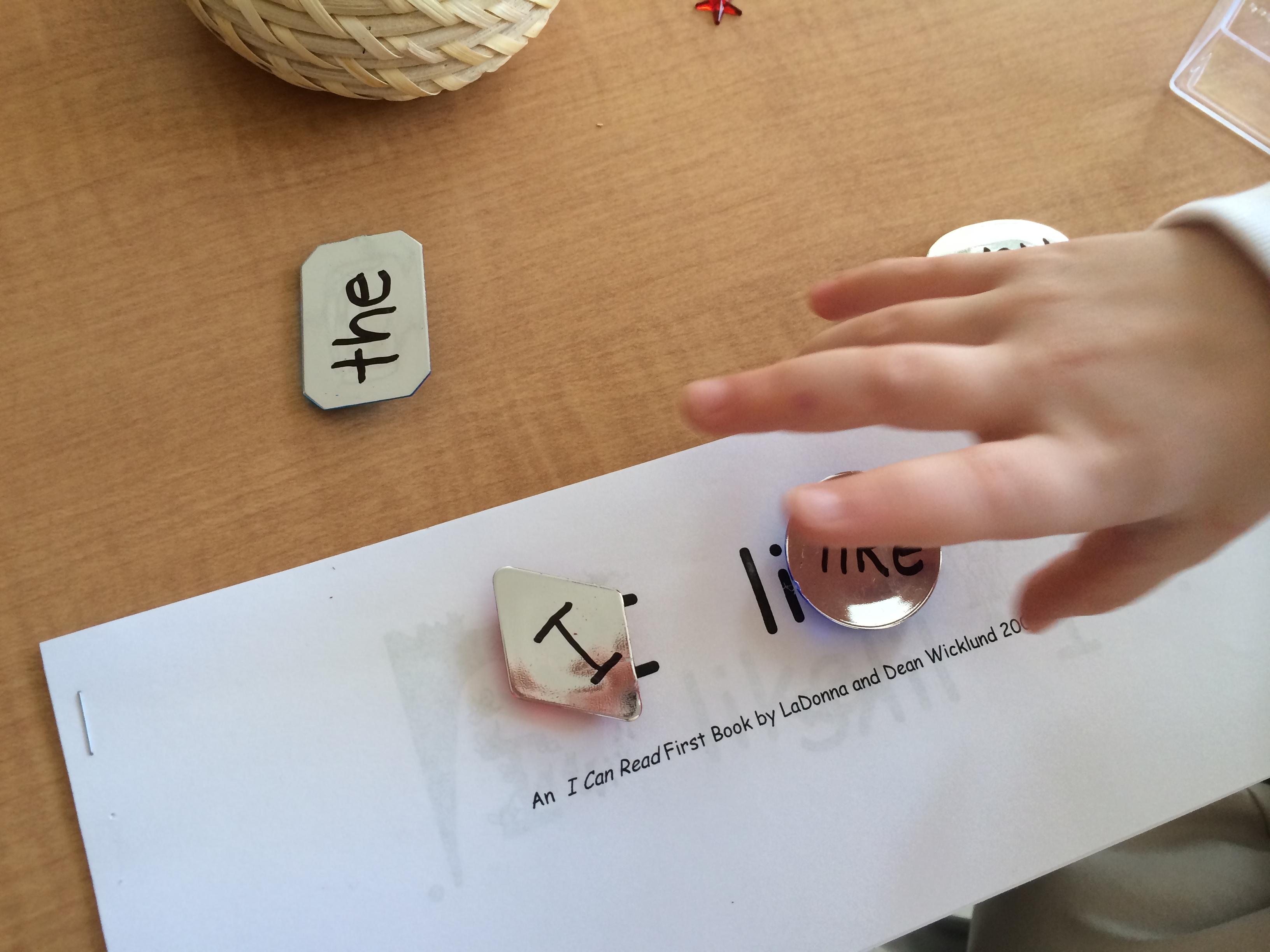I have him reach in and pull out a letter, tell me its sound – then place it in proper order.