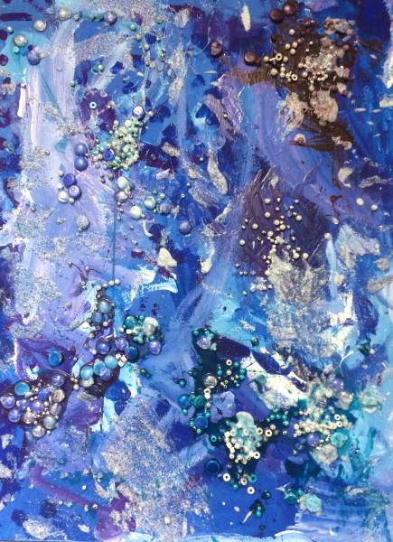 Day Three: I prepared a tray of loose materials – assorted beads, baubles, and such in shades of white, silver, clear and pearl.