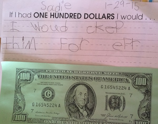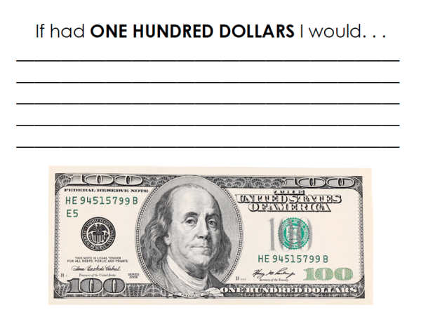 WRITING : Finally, I love this old time writing prompt (I also like giving them a fake 100 dollar bill to glue to the page. They love the fake money!). Download here!