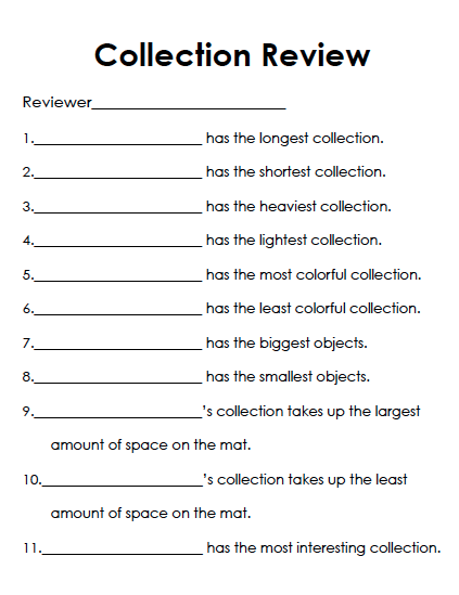 Next each student fills out a Collections Review sheet. FREE DOWNLOAD click here!