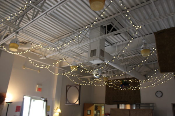 This is the ceiling of their large gathering area near the middle of the school. I love the use of twinkling lights here. It really gave the area a softer feel.