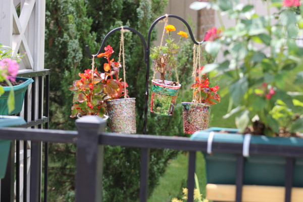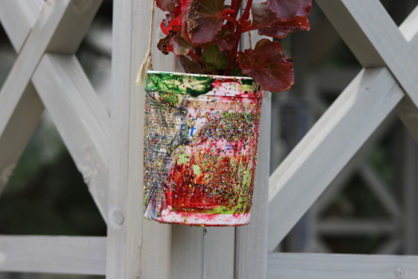 The children painted and bedazzled, if you will, old yogurt containers to re-purpose them into planters.