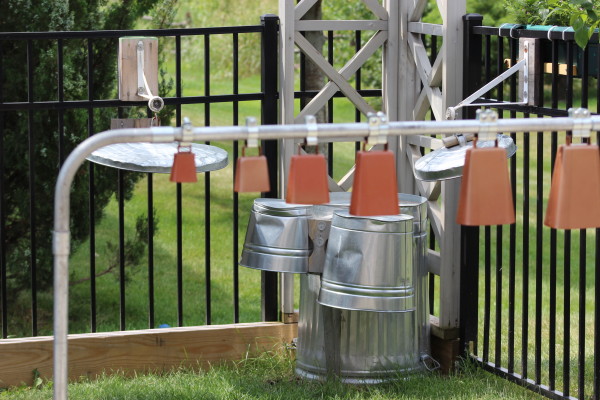 In the Sound Garden, children have access to cow bells and a drum set.