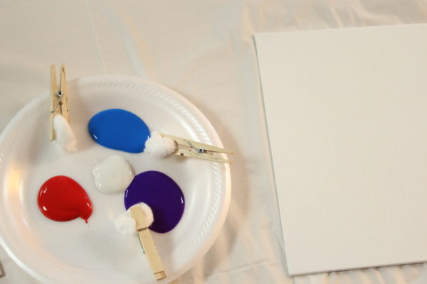 I decided to try a new technique for the canvas painting. While browsing Pinterest, I saw several pins of people using clothespins and cotton balls as paint brushes and thought I'd give it a go.