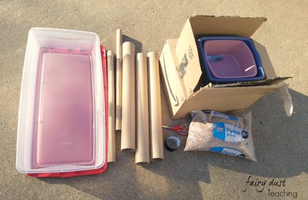 - I had my husband drill a hole in the large cardboard tube so they could either pour directly into it or watch the beans sliding down.